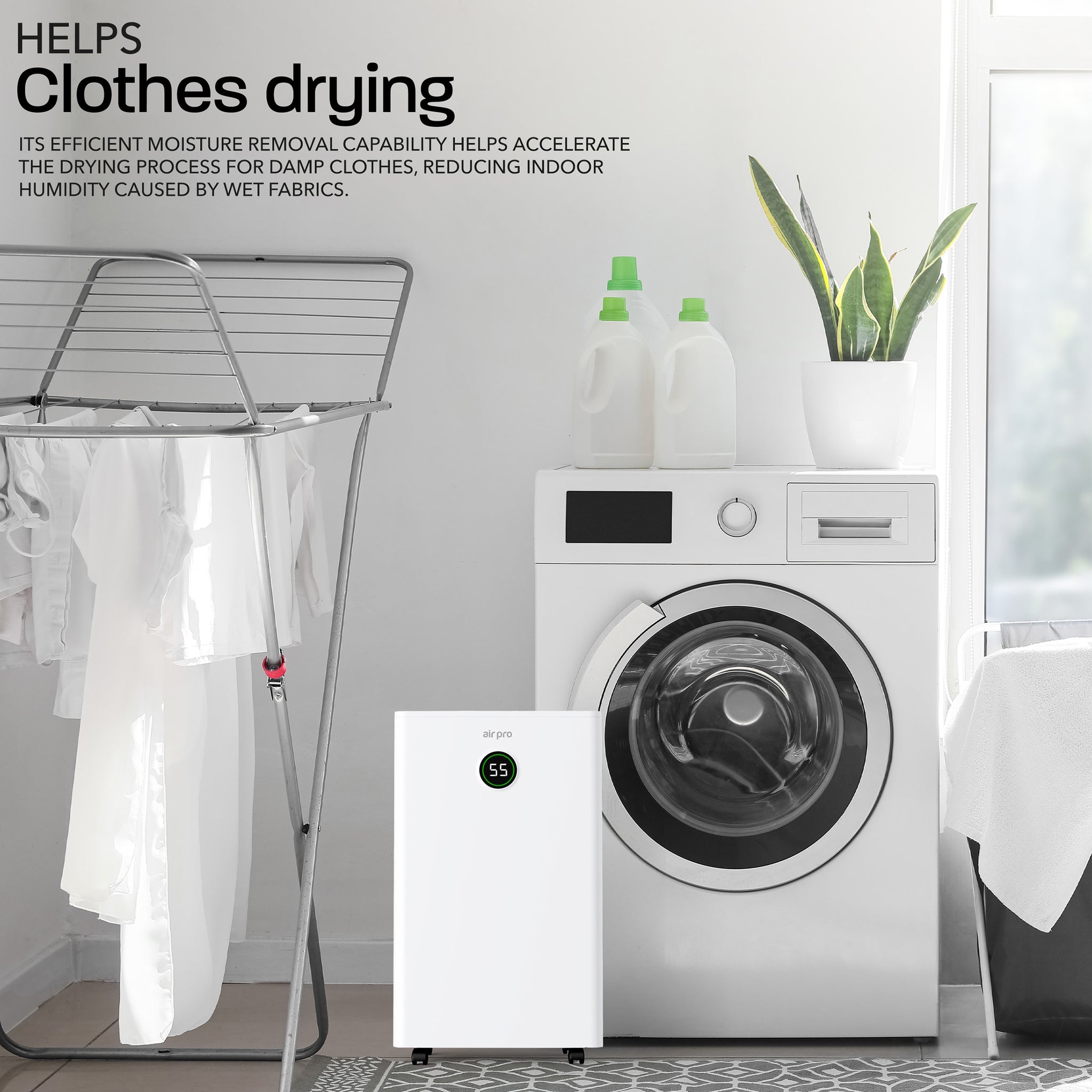 Eliminates Moisture Quietly: This Air Pro Dehumidifier boasts a quiet working sound below 42db. It also comes with a 5.5L water tank and a continuous drainage hose for long-term use. The maximum coverage is to 20m² (16L/Day) or 30m² (25L/Day).
